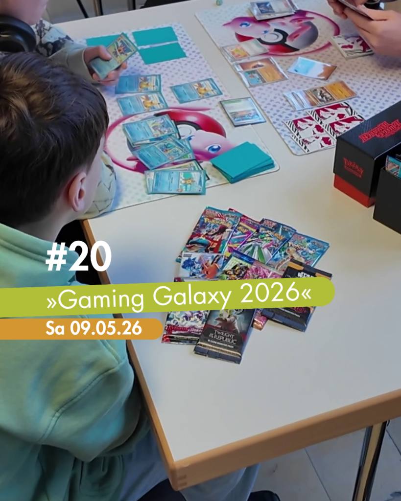 Die Gaming Galaxy ist ein Tag rund um das Kulturgut Gaming, das von Kinder und Jugendliche organisiert und durchgeführt wurde. Dazu gehörten die Planung eines Turniers, das Designen und Drucken von Pokalen in einem 3D-Programm, das Erstellen einer Social Media Kampange für Instagram und das Plakatieren von Werbepostern. Am Ende entstand daraus ein Gamingevent für 12-27 Jährige, bei dem über 200 Besucher*innen vor Ort waren.